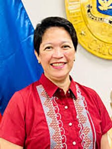 She served in various capacities in the Department of Foreign Affairs, most recently as Director of the Socio-Cultural Division of UNIO, and prior to that, as Director for Southeast Asia I covering Brunei, Indonesia, Malaysia Myanmar, Singapore, and Viet Nam of the Office for Asia and Pacific Affairs.
